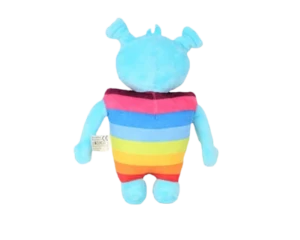 Dies ist der regenbogenfarbene Marsmensch-Plüsch von Tradanim. Die belgische Organisation, die sich auf das Erlernen von Fremdsprachen spezialisiert hat, hat uns ebenfalls mit der Herstellung ihrer Werbeplüschtiere beauftragt.