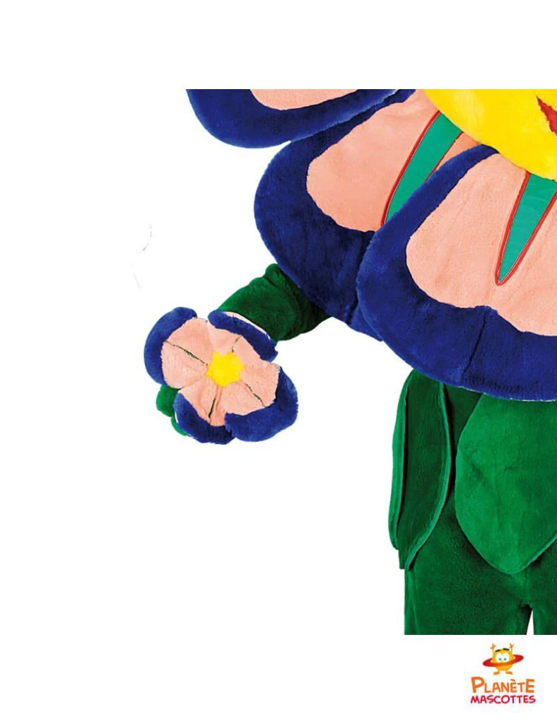 Mascota disponible en talla única (1,6 m – 1,9 m). El disfraz de flor está hecho de tejido suave, lavable a máquina.