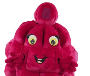 Soy una mascota frambuesa. Tan bonita como sabrosa, soy muy apreciada por mi sabor y mi bonito color, entre rojo y rosa. Con un disfraz como el mío, ¡seguro que será una velada llena de color y vitaminas! No es un juego de palabras, claro…