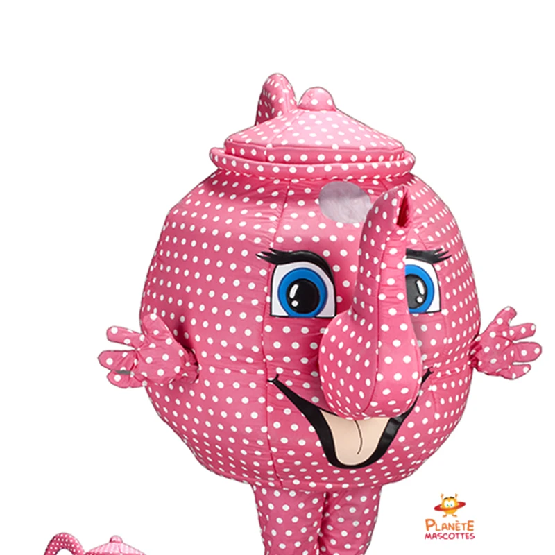 Disfraz de mascota tetera, un disfraz para tus eventos, animaciones o espectáculos. Una mascota profesional fabricada en Francia que cumple las normas CE y REACH.