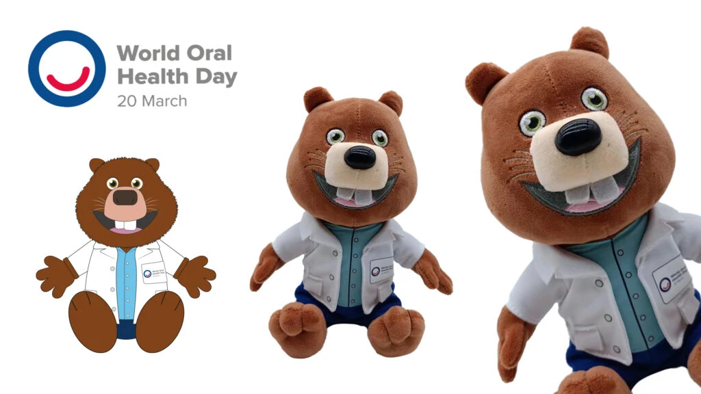 La FDI trabaja para mejorar la salud bucodental en todo el mundo. Su mascota castor, Toothie, encarna la importancia de cuidar los dientes con humor y educación. Con su amplia sonrisa, sensibiliza a jóvenes y mayores de forma lúdica. ¡Es el embajador perfecto para promover la higiene dental de forma amistosa!