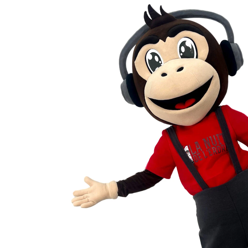 Mascotte espiègle et débordante d’énergie, le singe du festival La Nuit de l’Erdre incarne à la fois la convivialité, la joie et l’esprit festif de l’événement, rassemblant festivaliers de tous âges autour de concerts vibrants et de moments inoubliables.