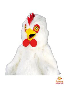 Mascotte disponible en taille unique (1.6m – 1.9m). Le costume de coq blanc est composé d’éléments souples que vous pourrez laver en machine.