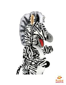 Je ne suis pas un caméléon, ça pas de doute sur la question ! Mais je suis un beau déguisement, au pelage doux et luisant. Il paraît que je suis un animal sauvage, mais rassurez-vous. Il suffit de me caresser dans le sens du poil et je suis aussi tendre qu’un agneau. Une gentille mascotte de zèbre comme moi, ça ne se refuse pas. Je vous aurais prévenu ! Ne tardez pas à me rencontrer, si vous voulez voyager instantanément dans de lointaines contrées.