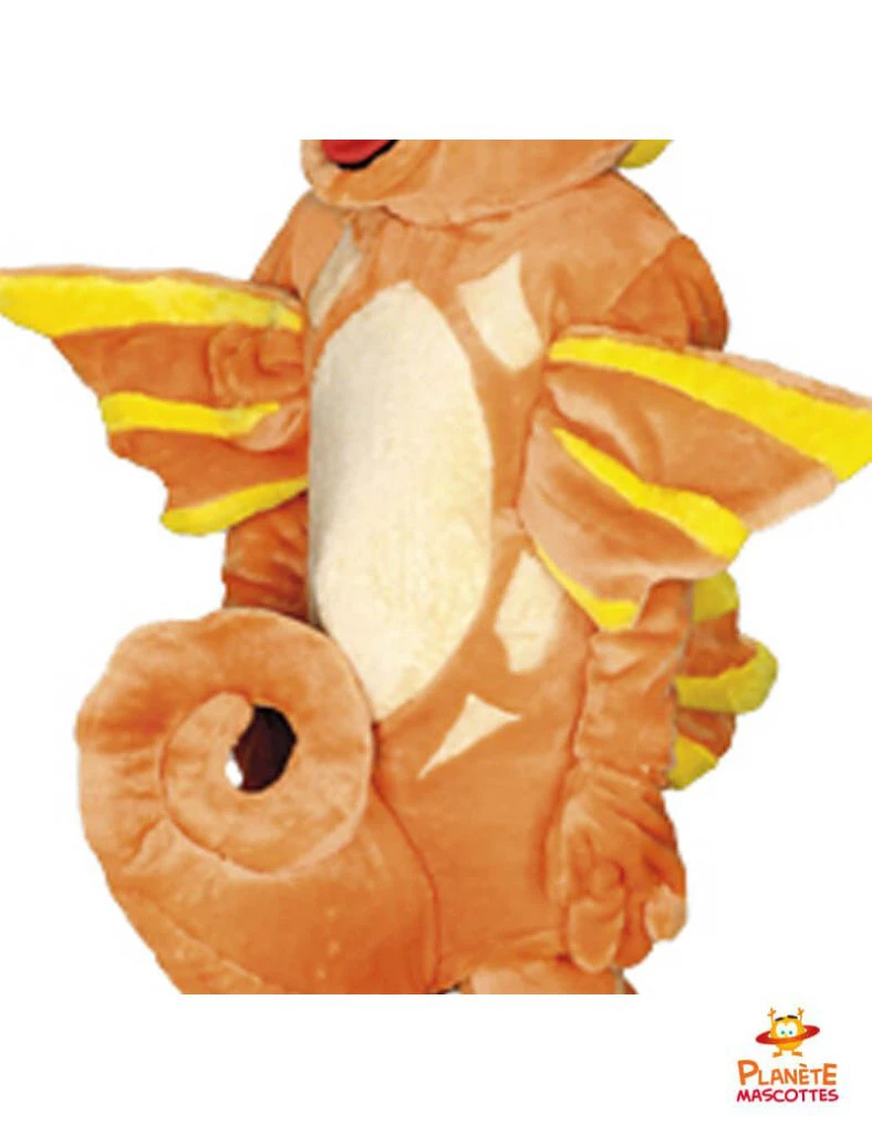 Mascotte disponible en taille unique (1.6m – 1.9m). Le costume d’hippocampe est composé d’éléments indépendants que vous pourrez laver en machine.