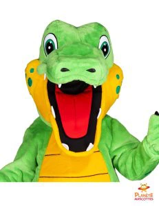 La peluche géante d’Alligator n’est pas dangereuse, bien au contraire !  Elle sait mettre sa férocité de côté pour partager sa générosité légendaire. Le costume d’Alligator n’est pas à confondre avec son cousin la mascotte Crocodile, leur ressemblance est parfois troublante mais c’est bien l’Alligator qui bronze au soleil de Floride toute l’année et qui vient vous embrasser du bout de son museau allongé.