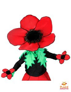Mascotte disponible en taille unique (1.6 – 1.9m). Le costume de fleur des champs est composé d’éléments souples que vous pourrez laver en machine.